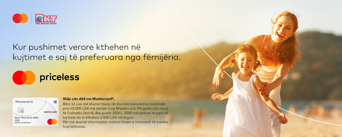 Make 12 or more purchases in the minimum cumulative amount of LEK 40,000 with your BKT Mastercard card during each month of the campaign (July and August 2024) and the first 2,000 mastercard cardholders of Albania (debit, credit and prepaid) will receive 2,500 ALL CASHBACK in their account.