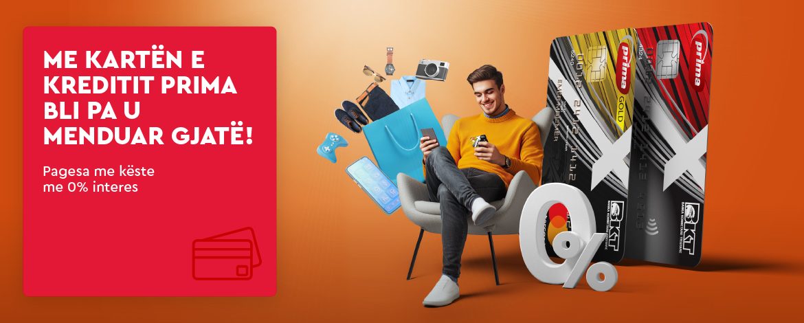With Prima credit card, buy whatever you want without thinking twice!With Prima credit card, buy whatever you want without thinking twice and enjoy the following benefits: 0% commission for online purchases, both domestically and internationally Installment payments with 0% interest Loyalty Program Bonus No maintenance fee for the first year With Prima card, more opportunities, fewer limitations!