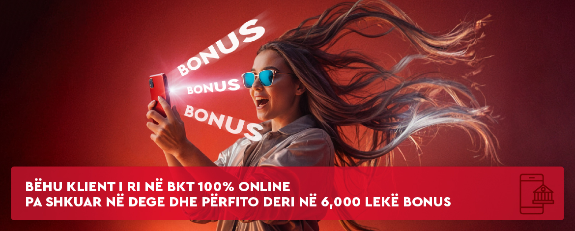 BKT shpërblen klientët e rinj që regjistrohen online përmes aplikacionit BKT Smart me një bonus deri në 6,000 Lekë, që përfshin tre hapa të thjeshtë: