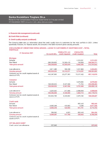 The following table sets out information about the credit quality loans to customers for the retail portfolio in 2021. Unless