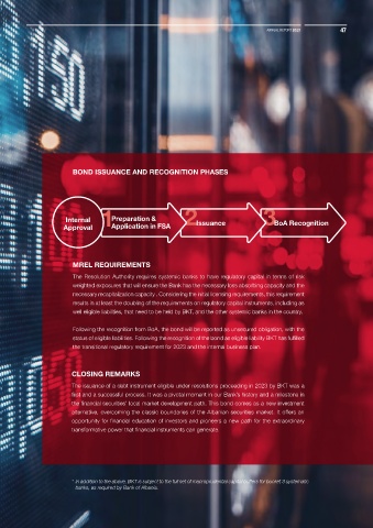 status of eligible liabilities. Following the recognition of the bond as eligible liability BKT has fulfilled