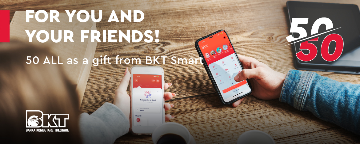 For every money request transaction over the value of 1,000 ALL to different friends (customers in BKT), you and your friends will earn 50 ALL.