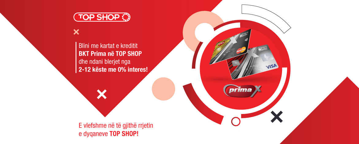 Buy on installments in TOP SHOP with BKT Prima credit cards and choose up to 12 installments with 0% interest. Valid for all TOP SHOP stores!