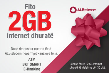 Nëse keni numër celulari ALBtelecom dhe regjistroheni ne aplikacionin më të zgjuar bankar BKT Smart, do të keni mundësinë të fitoni 1 GB internet fala...