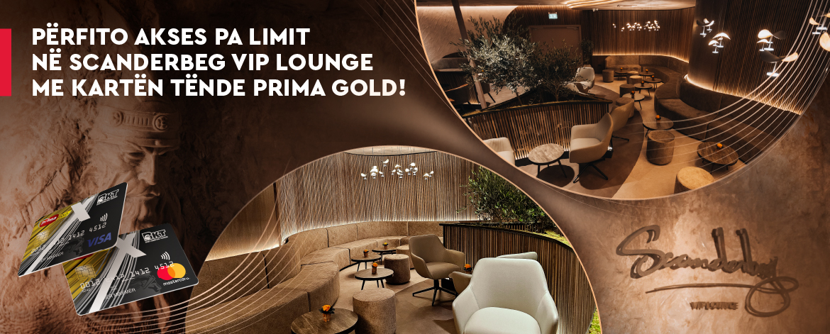 Nëse po udhëtoni për punë apo kënaqësi, ju ofrojmë një avantazh unik për mbajtësit e kartave MasterCard® Gold dhe Visa Gold të BKT. Kartëmbajtësit Prima Gold mund të përdorin pa pagesë Sallën e Biznesit të Aeroportit Ndërkombëtar të Tiranës.