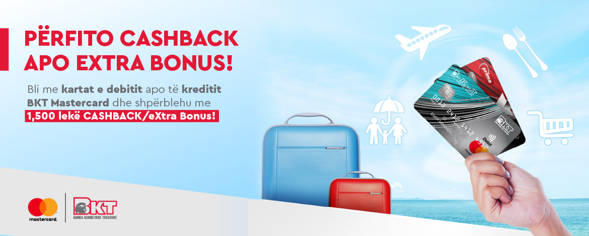 Për të shpërblyer besnikërinë dhe dedikimin BKT ju prezanton fushatën Cashback/eXtra Bonus ekskluzive vetëm për kartat e debitit dhe të kreditit individuale Mastercard të BKT!